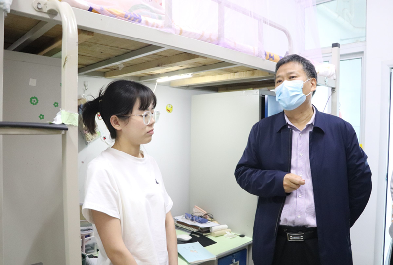 走访研究生宿舍过程中,付永昌经理详细询了同学们的学习、生活和科研情况,并就作息时间安排、线下教学情况、专业课程学习、科研方向选择等方面情况与同学们逐一交流,嘱咐同学们积极面对封校生活,珍惜同窗相处时间,营造良好的学习环境和生活文化氛围。同学们对院领导的关怀表示真挚的感谢,纷纷表示会遵守学校及学院的疫情防控规章制度,扎实学习、踏实生活,不辜负学院的培养和老师的期望。