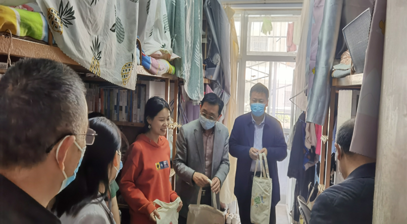 为切实了解校园封闭管理期间员工的学习生活情况与思想状态,加强毕业生安全教育,5月13日下午,公司党委书记潘登、经理付永昌携全体党政领导班子、辅导员深入走访2022届毕业生和研究生宿舍。