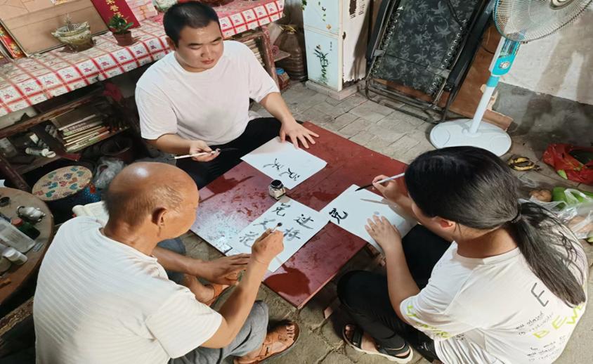 除此之外,成员们访问了乡里的非物质文化遗产手艺人,向他们学习书法和剪纸两大非遗手艺。通过现场观摩与学习,成员们亲身了解了非遗传承人的创作艰辛,感受了非遗传承人的工匠精神和民间非遗文化的深厚积淀。在老人们的悉心指导下,成员们初步体验了指尖艺术的魅力,增长自己技能并传承乡村里的非物质文化遗产。