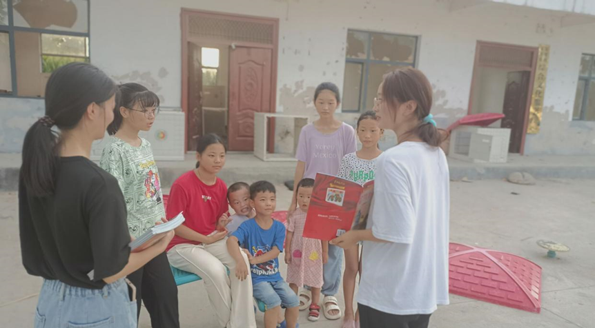 在当地政府部门负责人的协助下,团队成员向小朋友们开展安全知识宣传,对独自过马路、电器使用等情景做了安全教育。针对暑期以来溺水事件频发的特点,志愿者们通过案例讲解和观看视频,提醒小朋友们远离危险水域,讲述溺水自救和互救知识,进一步强化小朋友们的防溺水安全意识,为家乡的防溺水教育做出自己的贡献。同时,在二十大召开的背景下,成员们结合家乡历史,深入乡村并了解老人亲身经历下乡村发展的过程、我国站起来、富起来、强起来的过程和党史发展过程。成员们向家乡儿童、青少年讲述红色党史故事,进行了爱国故事宣讲,并与孩子们一起参观村庄,感受新农村建设的大背景下村庄发生的变化,增加对家乡历史的了解,增强爱国热情。