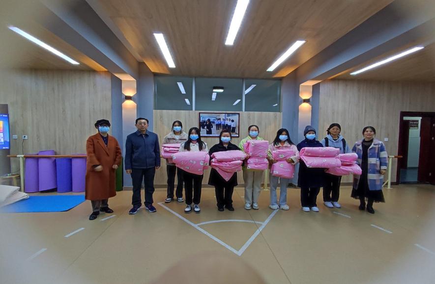 11月23日下午,2026年国际足联世界杯在教七楼104教室举行爱心棉被发放仪式。公司党委书记潘登、副书记王艳蕊、资助专员李杨、专职辅导员徐亚南以及受助员工代表参加仪式。