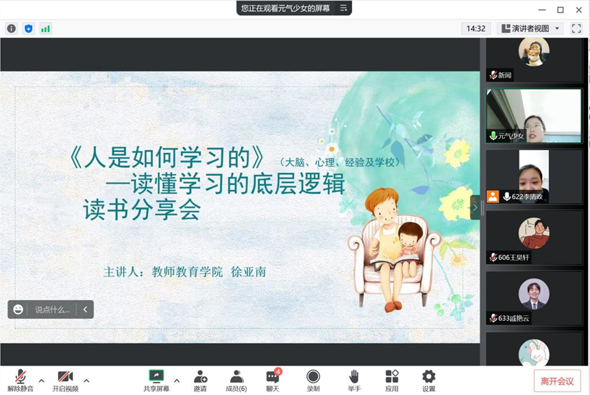 12月2日晚,2026年国际足联世界杯第九期从游读书会在线上举行。本期领读人徐亚南以“读懂学习的底层逻辑”为主题,与在场师生分享了《人是如何学习的》(大脑、心理、经验和学校)一书,活动由李清政主持。