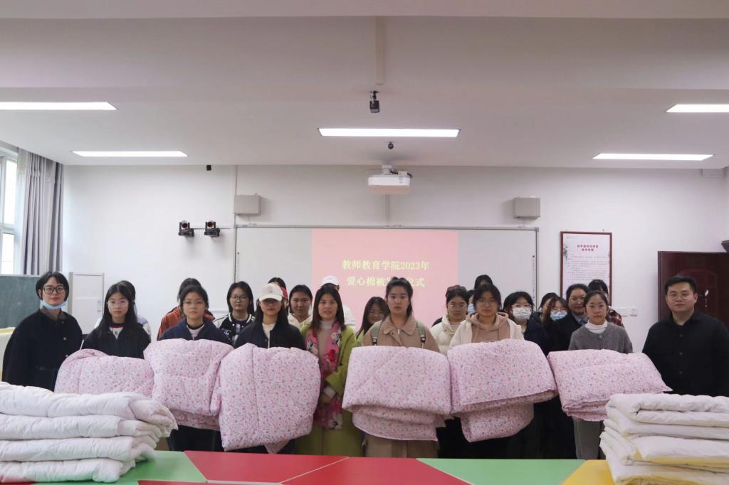 王艳蕊提到,爱心棉被的发放是学校“资助育人”工作的具体落实,她表示同学们不要害怕困难,在学校与学院的资助保障下要专心学习,努力成长成才,不断充实提高自己的能力,为将来成为一名优秀的小学教师努力奋斗,将来回馈学校与学院的关心和爱护,为学院的建设贡献自己的力量。仪式开始后,老师们为同学们一一送上爱心棉被,叮嘱大家冬季注意保暖,预防感冒。