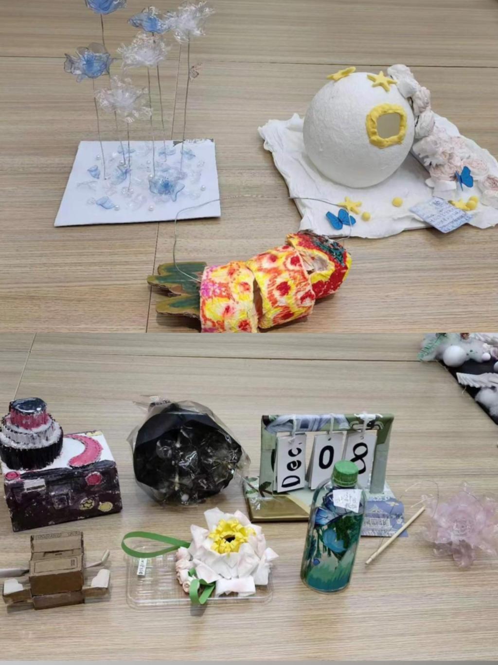 通过创新和创造性的手段,将废弃物转化为有用的物品,从而减少对环境的污染和资源的浪费。喝完的饮料瓶、拆完的快递盒、用过的卫生纸等闲置物品,摇身一变成了漂亮的太空屋、纸风铃、永不凋谢的塑料花等,员工们的奇思妙想为这些废品注入了有趣的灵魂,一系列精美小摆件都让人看了爱不释手,真正做到了废品循环利用的价值。