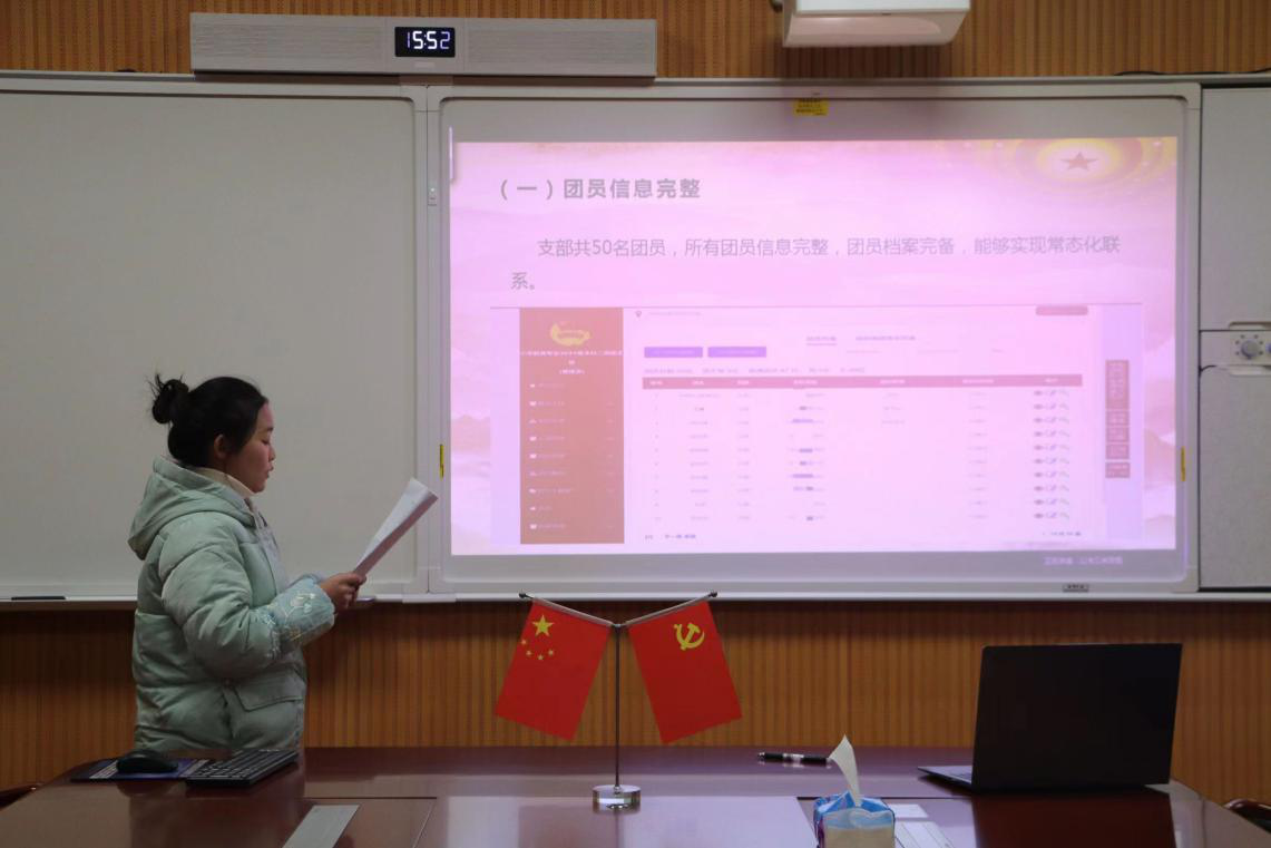 衡子莉先向参会人员介绍了此次会议的主题与流程。随后,各团支部团支书依次进行发言。其中,2021级本科二班团支书李继红从支部班子建设、团员管理、组织生活、制度落实和作用发挥几个方面进行梳理和总结,及时发现工作中的不足之处并提出完善的方法。2022级本科三班团支书王松勇从支部组织建设和思想建设两方面阐述和发言,他表示在今后的活动工作中,会更加认真落实学院团委各项要求,更加深入了解本团支部团员的思想动态,及时做好团员思想引领,努力把支部工作做得更好。