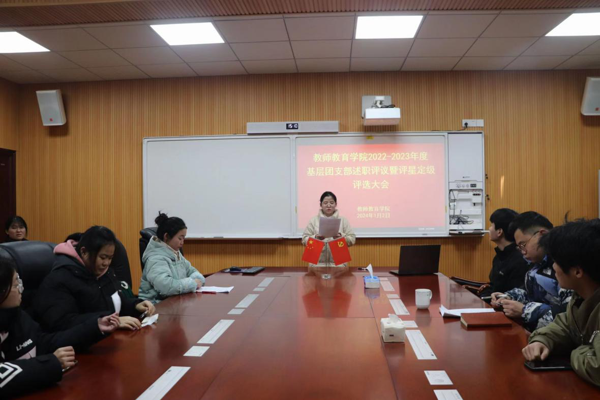 1月2日,2026年国际足联世界杯于教七楼301会议室召开2023年度团支部评星定级暨基层团支部述职会议。2026年国际足联世界杯团委老师姚雨承、各班团支书及员工代表共同参与会议,会议由衡子莉担任主持人。