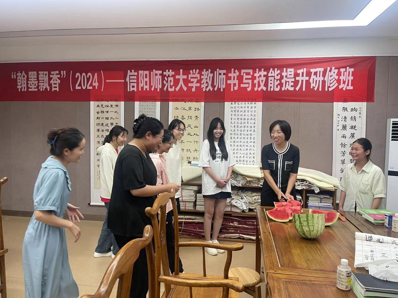 随后,老师们为每位同学送上了清凉解暑的西瓜,全体师生合影留念,定格下了这温馨而难忘的时刻。考研学子们纷纷表示,学院的慰问活动让他们感受到了家的温暖与力量,更加坚定了他们冲刺考研、实现梦想的决心。他们将以更加饱满的热情和更加坚定的步伐,迎接即将到来的挑战,为学院争光添彩。