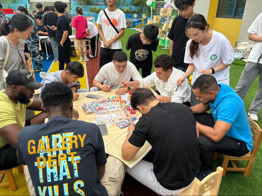 活动现场热闹非凡,一排排整齐的工作台上摆放着各式各样的月饼模具、馅料和面粉,志愿者向大家详细讲解了月饼的历史由来、制作工艺及文化内涵。随后,在志愿者的指导下,职工和小朋友们亲自动手体验冰皮月饼制作的过程。不同肤色的员工们围坐在一起,相互学习,共同合作,从最初的生疏到后来的熟练,每一块月饼都凝聚着大家的汗水和努力,更承载着对中秋团圆的美好愿景。紧接着是灯笼DIY环节,学院准备了丰富的材料,中外员工用彩笔在灯笼纸上绘制出多彩的图案,一盏盏色彩斑斓、形态各异的灯笼在大家的巧手中逐渐成形。最后,大家互赠手工作品,品尝彼此亲手制作的月饼,并致以节日的问候与祝福。