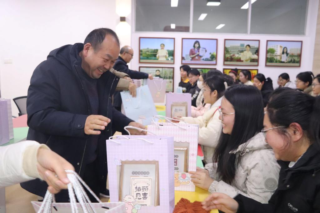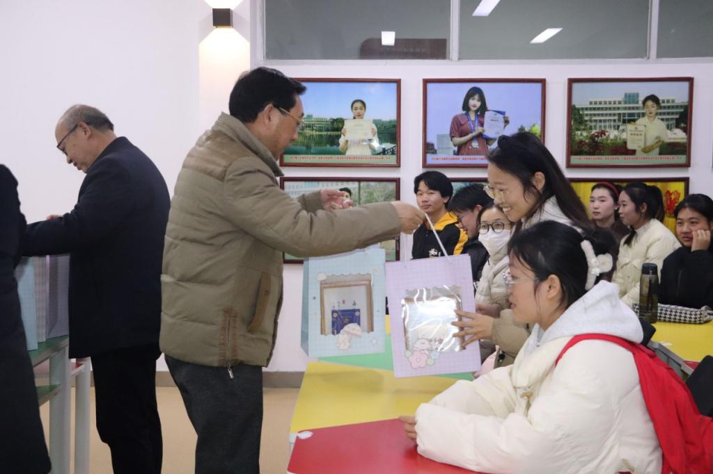 活动伊始,李文田向大家阐述考研对个人发展以及未来职业规划的重大意义,并向大家介绍了今年公司研究生报考情况与考研方向,就目前的考研形势,为大家分析了有关考研的相关政策,并为大家加油鼓劲。随后,公司优秀研究生代表董伟、刘远结合自身经历,向同学们讲解了研究生考试的注意事项。王淑贤对同学们考研路上的付出与努力给予充分肯定,并亲切地与在场考研学子进行谈心交流,关心询问同学们的学习生活情况。活动上,领导老师们向同学们分发学院为大家精心准备的考研大礼包。考研大礼包内有“苹稳上岸”、“心想事橙”、“枣日成硕”等寓意丰富的水果,有记录值得回忆考研瞬间的相框,有送来冬日温暖的暖宝宝,更有领导老师们亲手写下的祝福明信片……这些充满温暖的祝福包含着老师们对公司学子们考研顺利的殷殷期盼。会议尾声,潘登鼓励学子们学会自我调节,及时调整心态,坚定考研信心,希望同学们在考研的路上怀揣对科学探索的求知精神,不断探索,脚踏实地,始终持有恒心、耐心和专心。