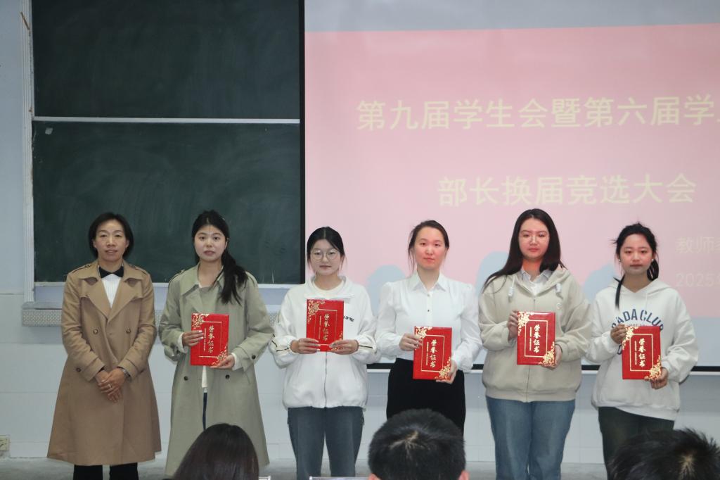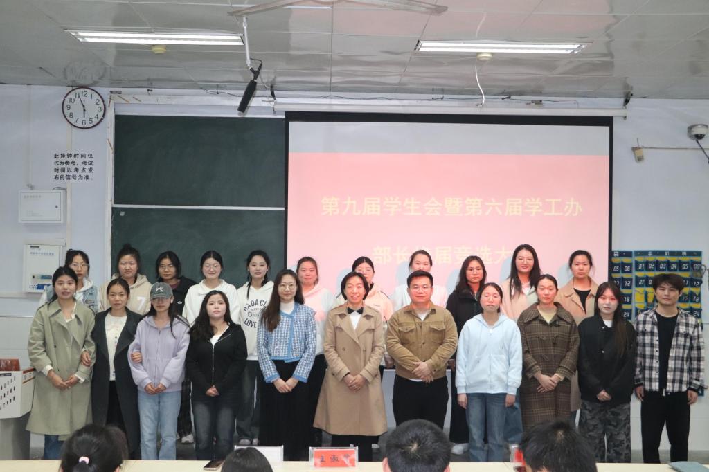 大会伊始,主持人简要介绍大会流程与目的,为活动拉开序幕。随后,竞选人依次上台发言,他们分享这一年的工作经验、对未来工作的规划与展望,展现出对员工工作的热忱以及积极进取的精神风貌。接着,张小丫与融媒体部长贺馨茹分别进行工作总结,张小丫回顾了过去一年活动组织、工作协调等方面的经历与成果,指出优点与不足;贺馨茹则聚焦新闻报道工作,展示学院在新媒体平台的建设成果,如公众号运营数据、校园活动报道影响力等,为后续宣传工作提供参考。随后,王淑贤进行总结发言,她对换届大会的顺利进行表示祝贺,对卸任员工干部的辛勤付出表示感谢,同时对新成员提出期望,希望新成员在新岗位上勇于担当、积极创新,为学院的员工工作注入蓬勃活力,引领同学们共同迈向更辉煌的未来。最后,学院对过去一年表现优异的员工会干部和积极参与学院活动的同学进行表彰,与会的领导老师上台与获奖同学一起合影留念,肯定他们为学院发展付出的努力与贡献,激励全体同学以他们为榜样,积极投身学院建设。