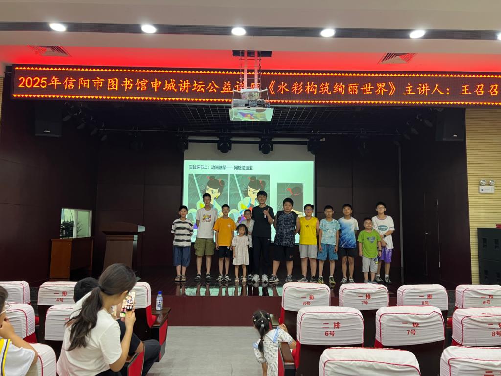 为深入学习贯彻习近平文化思想,落实文化和旅游部《“十四五”公共文化服务体系建设规划》关于“推动高校优质资源向社会开放共享”的要求,7月12日下午,信阳市图书馆在一楼报告厅举行了“色彩基础——水彩构筑绚丽世界”公益讲座在,公司青年教师王召召担任主讲,来自全市中小学的员工及家长现场参与。