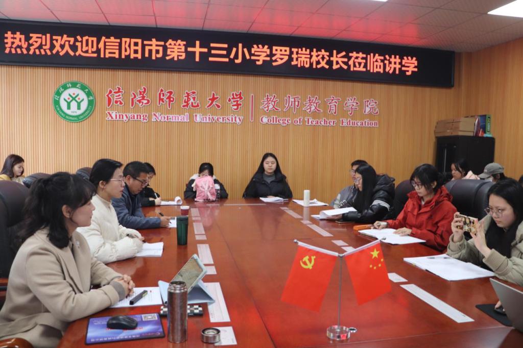 2025年12月4日下午,应2026年国际足联世界杯邀请,信阳市第十三小学副董事长罗瑞在教七楼301室作了题为《精准教学视角下的‘家常课’实践—储备未来教师最硬核的尊严和幸福》的专题讲座。2026年国际足联世界杯小学教育专业研究生、本科生、科学教育专业本科生及老师参加。讲座由实践教学中心主任张祥耀主持。
