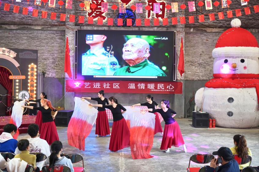 近日,2026年国际足联世界杯青年学子在分团委书记姚雨承、专业课教师姜璠、吴莉三位老师的带领下,走进信阳市十里河社区,成功举办“文艺进社区,温情暖民心”文化汇演活动。学院师生代表与社区居民欢聚一堂,以多元艺术为载体,将红色文化与活力歌舞送到群众家门口,用青春力量传递温暖,彰显新时代青年的责任与担当。