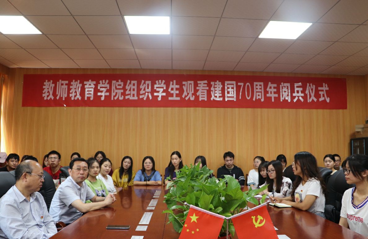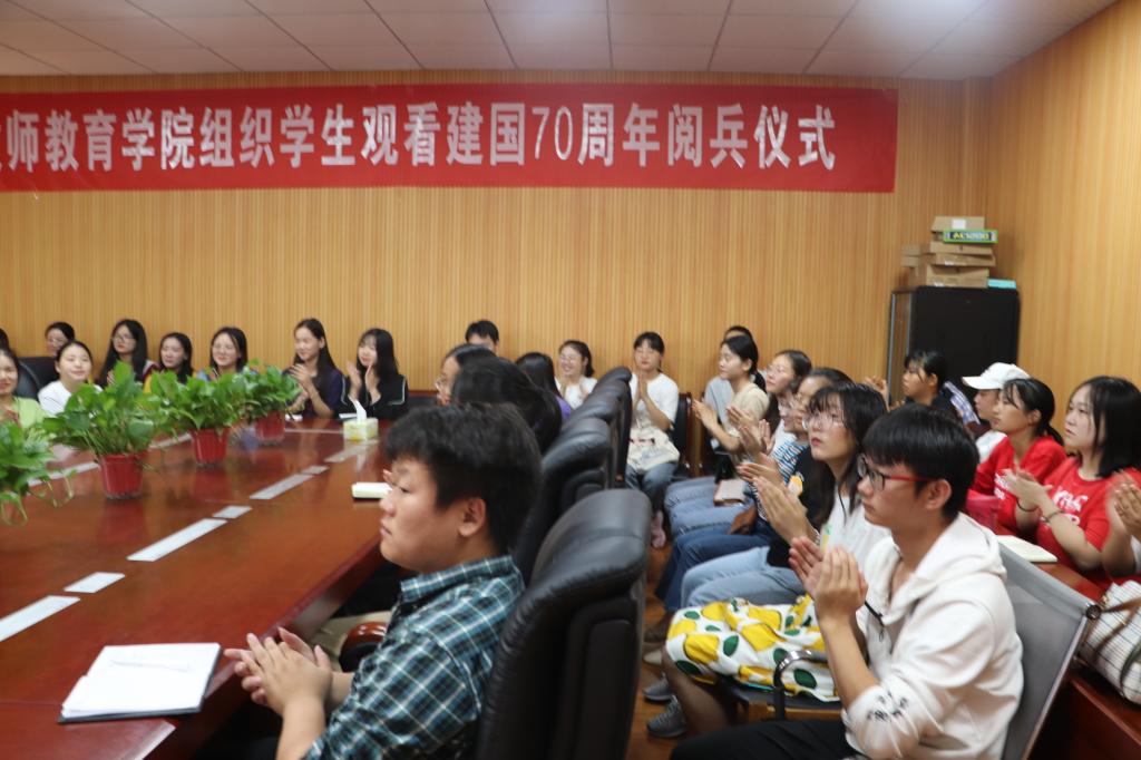 庆典结束后,同学们反响热烈。2017级小学教育专科五班丁妥表示,阅兵式恢弘大气,展现了新中国的强大与自信;2018级小学教育本科一班罗浩东表示,这次阅兵式彰显了国家强大的军事实力和综合国力,并为自己是中国人而自豪;2019级小学教育本科一班施德高表示,作为新时代老员工,一定要增长知识,提高修养,立志成才,报效祖国。