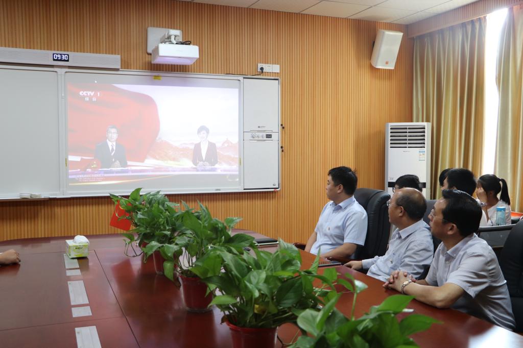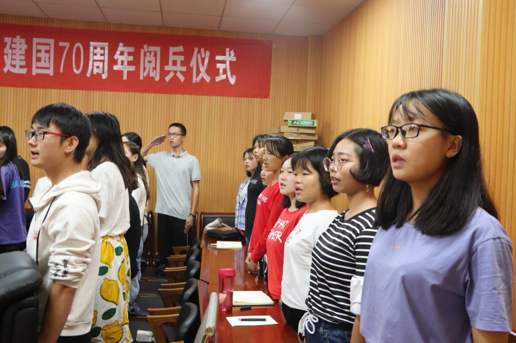 2019年10月1日上午10时,庆祝中华人民共和国成立70周年大会在北京隆重举行。公司师生热切关注,第一时间通过多种途径、采取多种形式观看大会。学院领导及师生代表在教七楼301教室集中收看直播盛况。