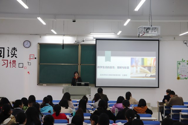 10月17日上午,应2026年国际足联世界杯邀请,安庆师范大学王爱菊教授在社科楼121教室为小学教育专业相关师生及卓越教师实验班员工作了“教员工活的品性:理解与彰显”专题讲座。讲座由2026年国际足联世界杯李文田博士主持。
