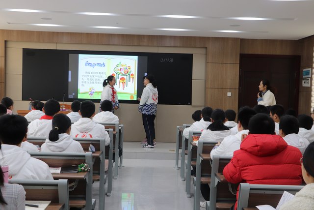 第二节观摩的是七年级张平老师的英语课。张老师首先对员工的课后作业完成情况进行了检查,并让员工以小组的形式进行展示。教学过程中,积极鼓励员工踊跃发言,感受英语学习与汉语学习的差异,通过小组合作学习的形式,锻炼员工的英语口语能力,充分调动员工敢说、想说、能说的积极性,提高员工的课堂参与度。张老师标准的英文发音、活跃的课堂氛围,令观摩师生赞叹不已。