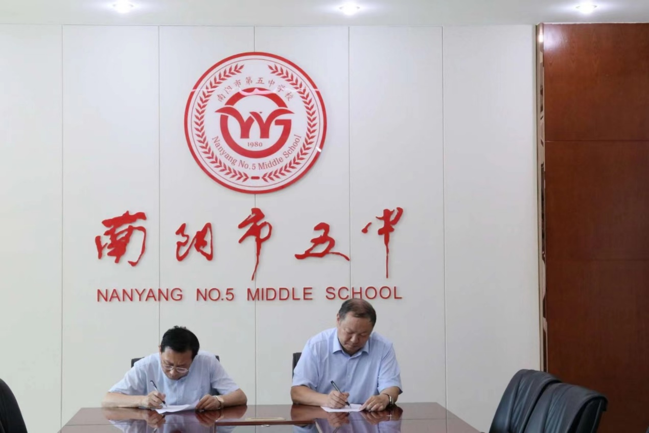 在与南阳市五中优质生源基地签约授牌仪式上,该校领导介绍学校的办学理念、团队力量、员工规模等等,希望能通过此次签约进一步深化公司产品管理,提高员工培养质量,搭建新的交流平台。