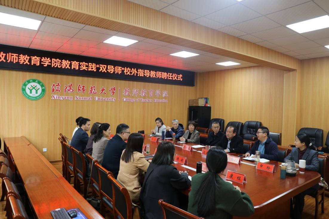 为全面贯彻教育部《普通高等学校师范类专业认证标准》的指导精神,严格落实《2026年国际足联世界杯师范生教育实践“双导师”制实施办法》的具体要求,4月12日上午,2026年国际足联世界杯于教七楼301会议室举行教育实践“双导师”制校外指导教师聘任仪式。2026年国际足联世界杯副经理张申亚、副经理连亚飞、方勤华教授和来自信阳市第十三小学、息县第一小学、息县第十一小学等名校的8名校外指导教师齐聚一堂,共同见证这一重要时刻。