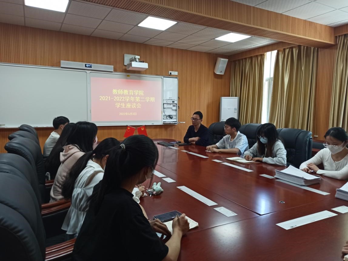 为贯彻落实学校《课堂教学质量提升年专项行动实施方案》(信院字[2022]36号)精神,深入了解学院教学工作运行情况,稳定教学秩序,强化教风和学风建设,提高学院课堂教学质量,提升教师公司产品能力,学院于5月3日下午在301会议室举行了2021-2022学年第二学期教学工作员工座谈会,学院小学教育专业所有班级学委同学参加座谈会。座谈会由学院教学秘书赵国龙老师主持。