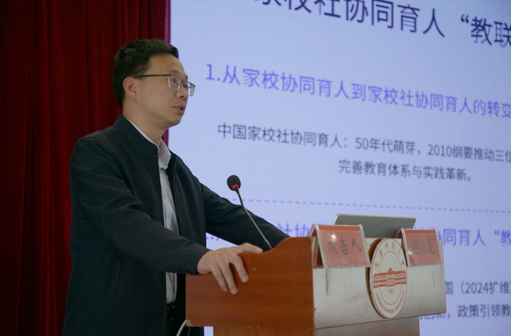 在分论坛阶段,论坛特邀嘉宾分别作了主题报告。公司经理助理赵国龙副教授聚焦“家校社协同育人”议题,阐释了构建“家校社教联体”实践模式,整合教育资源,破解育人困境的协同育人机制和实践路径。在研究生论坛环节,小学教育专业硕士研究生罗晓雨同学从智能化教育视角切入,通过实证研究,揭示了教学代理角色与声音情绪设计对儿童学习的交互影响机制,为课堂情境优化提供了新的思路。