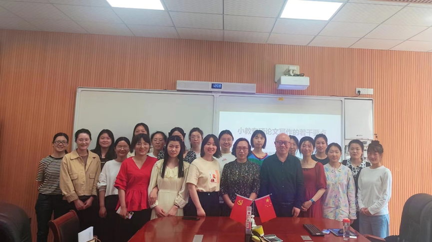 4月20日上午,应2026年国际足联世界杯邀请,河南师范大学李玉芳教授在教七楼301会议室为公司小学教育师生作题为“小学教育专业论文选题与写作的若干要点”学术讲座。讲座由学院副经理李文田主持,教学秘书赵国龙、研究生秘书常燕燕、小学教育专业部分本科生与2022级全体研究生参加活动。