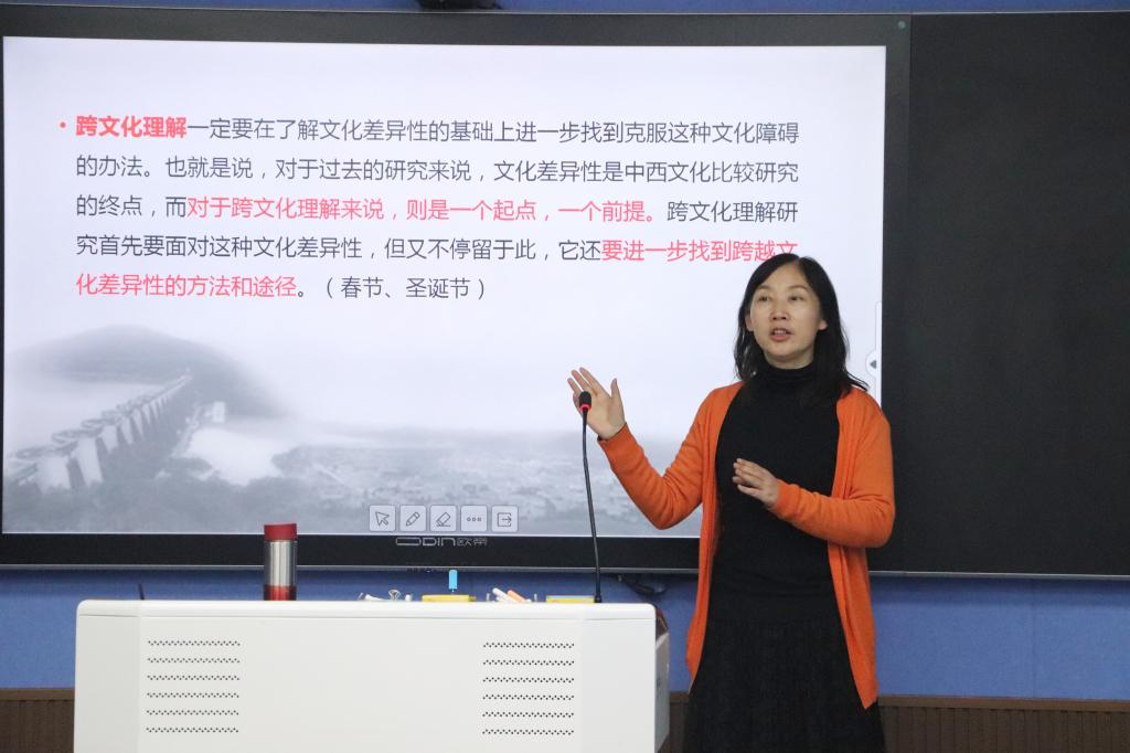 章教授围绕中西方文化,从“文化品格的概念和内涵、文化品格的意义和价值、英语教师文化品格的培养路径、中西文化的差异、讲好中国故事”五个方面进行了深入解读。首先,她讲述了文化品格的概念和内涵,强调指出文化品格培养的重要意义和价值,接着以中国文化在物质、精神、制度和民俗方面的具体体现为例,借助神话传说、历史故事、跨文化绘画、文字建筑等中国文化形式,深入阐述了中国传统文化在世界历史上举足轻重的地位。最后,章教授回归外语课程对文化品格形成的独特性,通过双语互动机制领悟多元文化,帮助员工形成“和而不同”的多元文化意识和能力,养成良好的文化品格。报告最后,赵国龙老师对实验班员工提出更高要求:作为当代老员工,要主动提高文化素养,传承好中国优秀文化传统,自觉肩负起讲好中国故事的历史使命。