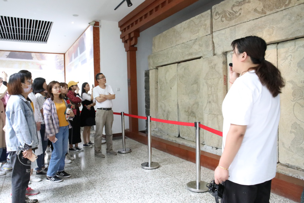 13:30,师生乘车前往南阳市汉画馆。13:50—14:50,师生在汉画馆考察学习,馆内汉画共分生产劳动、建筑艺术、历史故事、社会生活、天文与神话、角抵、舞乐百戏及祥瑞升仙八个部分,生动传神地展现了两汉时期的盛世景象和汉代南阳文化艺术的繁荣景象。结合馆员讲解,实验班员工进一步了解了我国古代社会的政治制度、礼仪风俗、经济状况、宗教意识、文学艺术、建筑学、天文学、教育学等知识,认识了汉画馆的内容及价值,领略了南阳文化的楚风汉韵,见识了中华文明的博大精深。