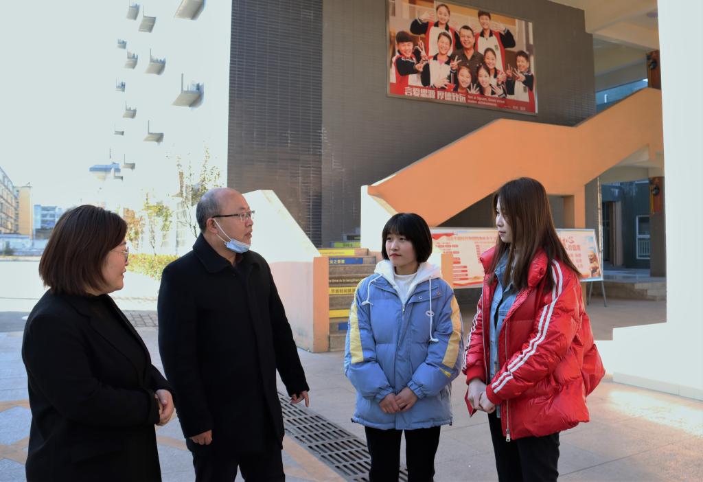 在实习学校,就实习生课堂教学准备、承担任务与生活条件等情况进行深入了解,同时与实习学校领导老师座谈,深度调研实习学校有关实习支教的具体意见与建议。