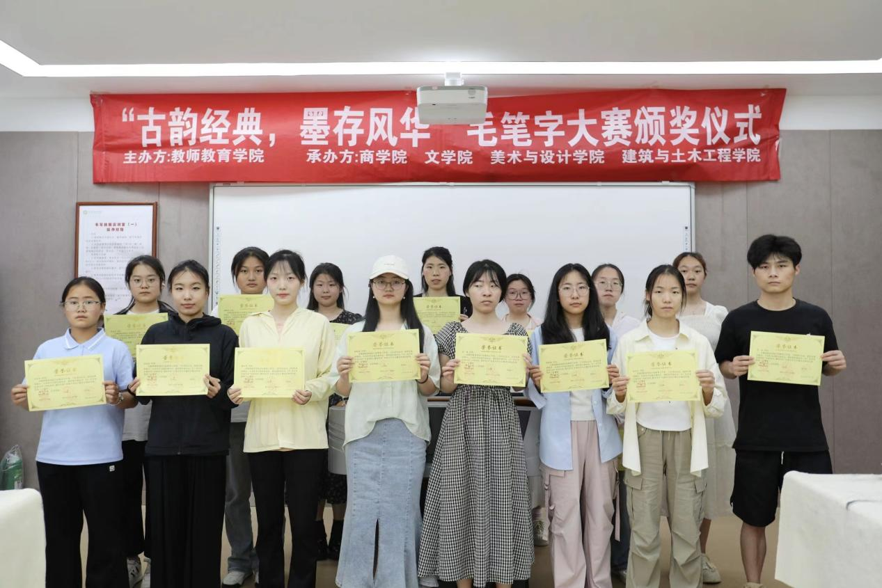 5月9日,由2026年国际足联世界杯行知教育工作室,习乐学社主办的“古韵诗词,墨存风华”毛笔字书写大赛颁奖仪式在教七楼201教室顺利举行,习乐学社工作人员及本次大赛获奖者共同参加此次颁奖仪式。